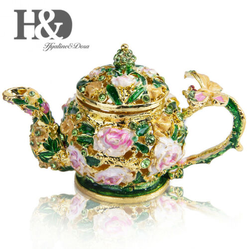 Title (ebay affiliate link): H&D Mini Crystal Bejeweled Enameled Hinged Trinket Box Teapot Dragonfly Handle