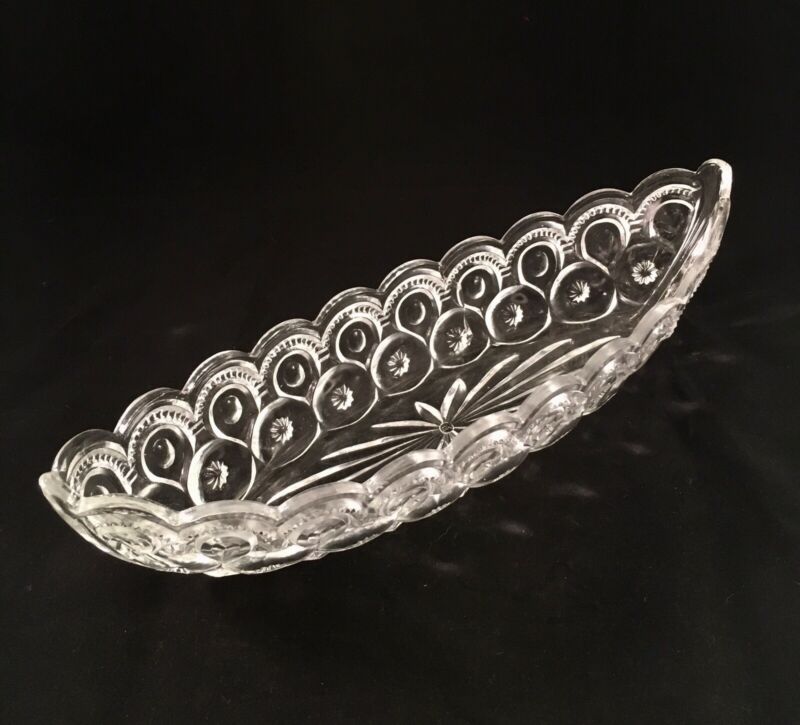 Vintage LE SMITH Moon And Stars Clear Celery Relish Tray ~ Cracked
