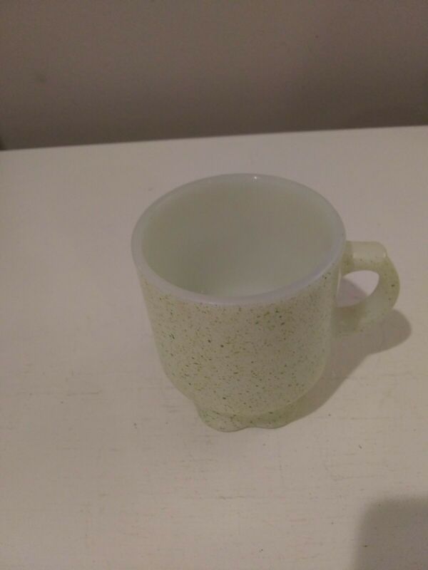 Title (ebay affiliate link): Vintage Fire King Mug Green Splatter With Flower Base Scalloped HTF