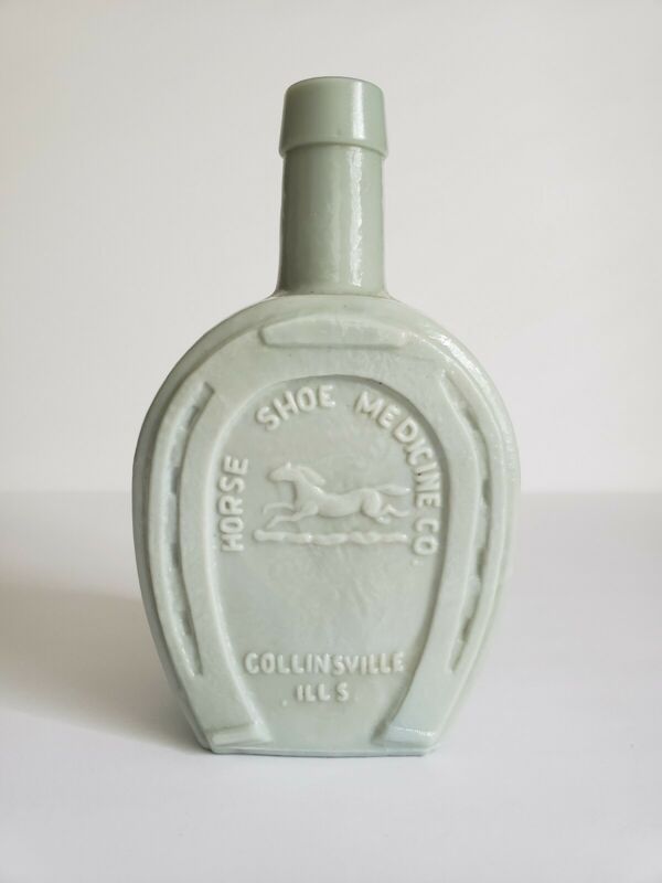 Title (ebay affiliate link): Horse Shoe Bitters Medicine Co Bottle Milk Glass Collinsville Wheaton Rare Color