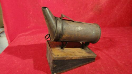 CAPTIVATING ANTIQUE A I ROOT CO BEE SMOKER W/ TIN CYLINDER-WOOD/LEATHER BELLOWS