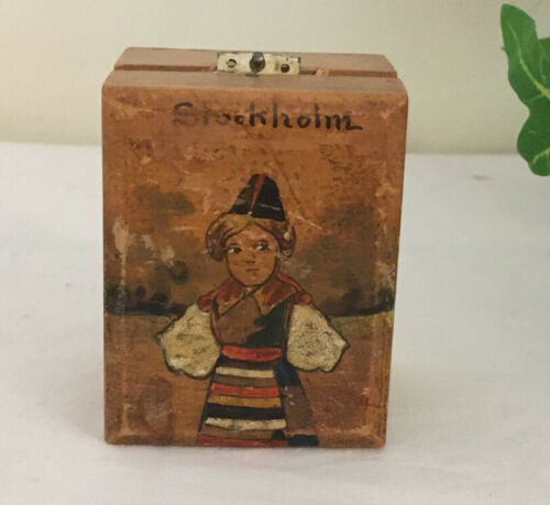 Antique Swedish Costume Painted Pretty Wooden Stamp Box #2 Stockholm