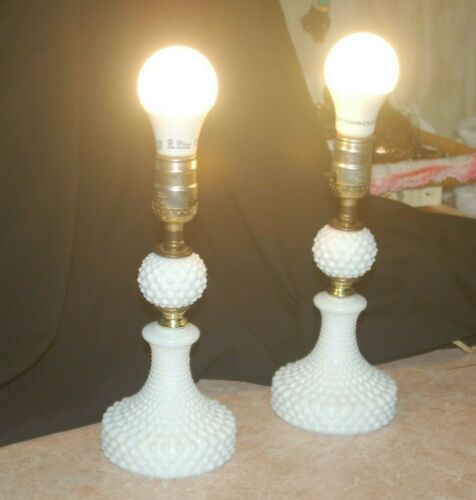 Pair of Milk Glass Hob Nail Lamps No Chips or Cracks