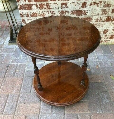 Vintage Wood Side Table Round