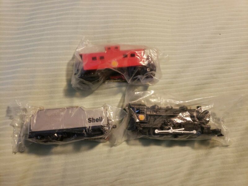 Title (ebay affiliate link): 3 Vtg Fletcher Barnhardt & White Shell Oil Toy Train Cars Diecast 1995 SET Adv.