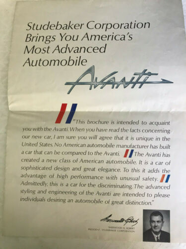 Vtg 1962 Studebaker Avanti Sales Poster Brochure Photos Features Car Original