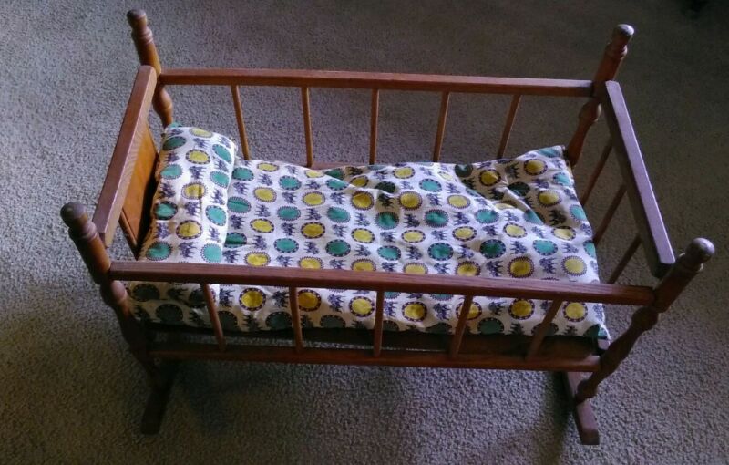 Title (ebay affiliate link): VINTAGE 1960s WOODEN BABY DOLL ROCKING CRADLE w/ ORIG. MATRESS - ORIGINAL OWNER!