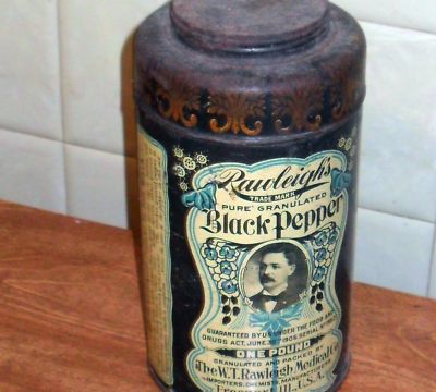 VTG RAWLEIGH'S BLACK PEPPER 1 LB GRAPHIC TIN ~