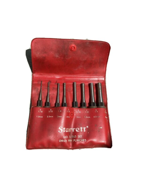 Title (ebay affiliate link): LS Starrett No. 565 S Drive Pin Punch Set in Vinyl Pouch