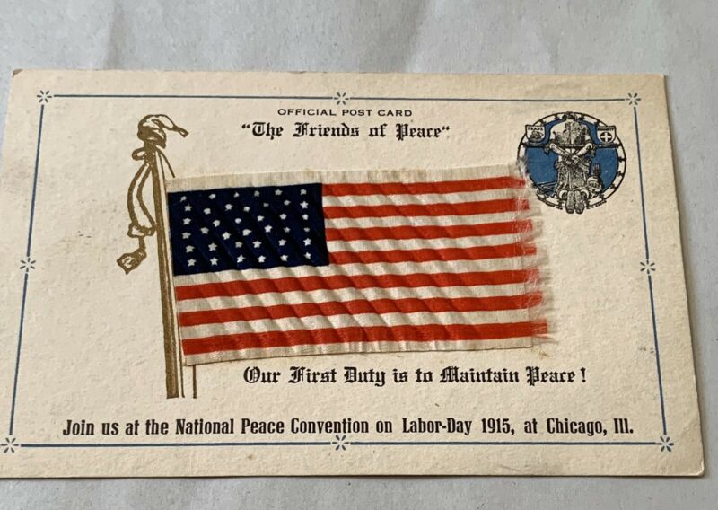 Title (ebay affiliate link): Vintage 1915 Patriotic Postcard - National Peace Convention - Silk Flag