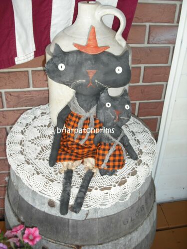 Primitive 21" Halloween Cat Witch Doll w her Kitten Fall Decoration Folk Art