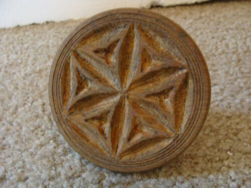 Wooden Butter Mold Press Hand Carved Star Flower Vintage Antique Primitive