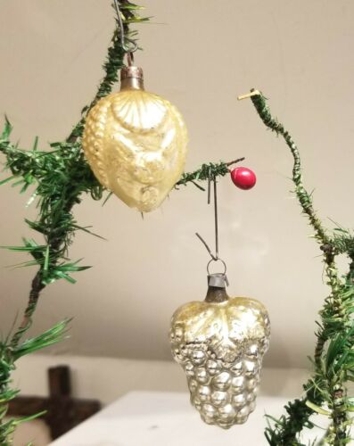 Title (ebay affiliate link): Silver Grape Cluster. Gold Flower Indent. Two Early 1900s German Glass Ornaments