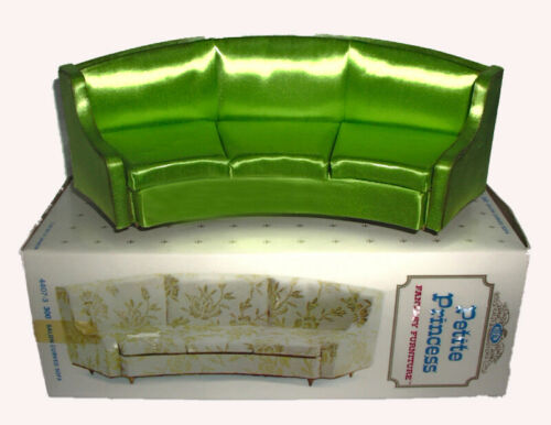 Title (ebay affiliate link): Petite Princess Vintage Miniature Dollhouse Furniture Salon Curved Sofa. Green.