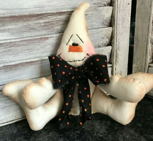 Primitive grungy folk art Halloween Ghost fabric shelve sitter tuck doll