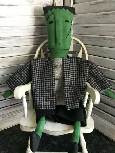 Primitive grungy folk art Halloween Frankenstein fabric tuck handmade doll