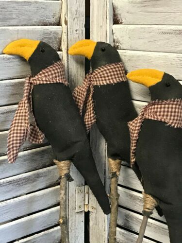 Title (ebay affiliate link): Primitive grungy folk art fabric set of 3 crow pokes doll ornies