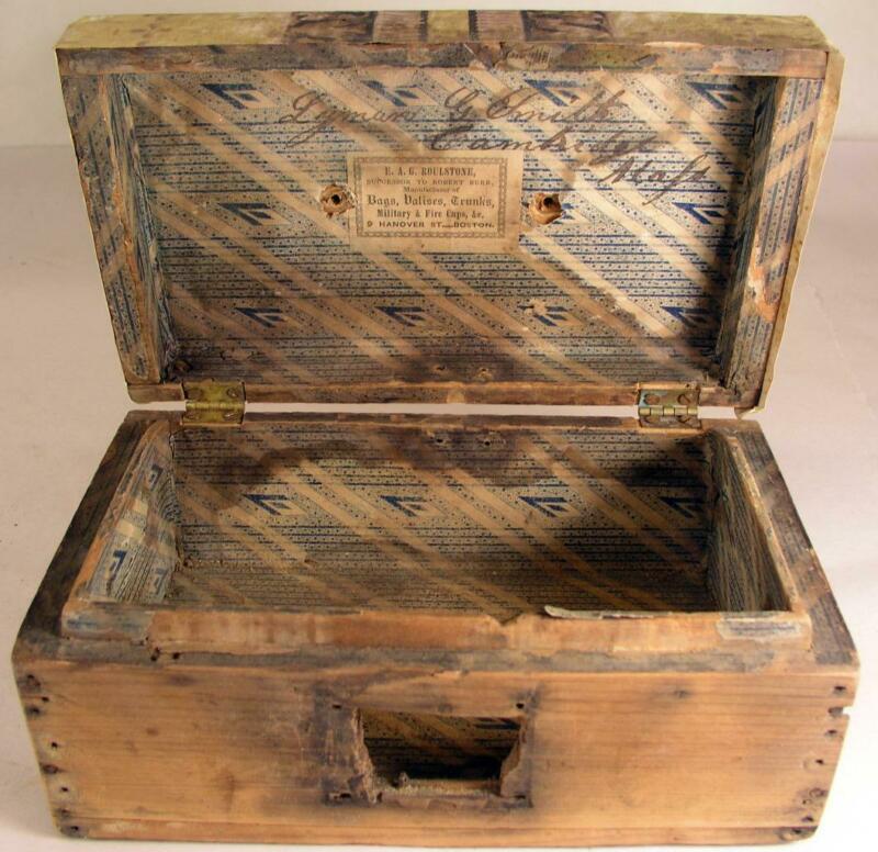 Title (ebay affiliate link): Antique Wooden Box W Wallpaper Interior & Old Burr Roulston Boston Paper Label