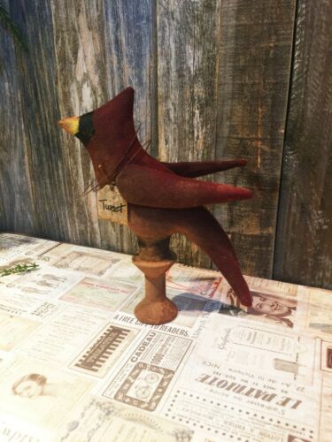 *Primitive 7x8in RED BIRD BOBBIN FABRIC GRUNGY HANDMADE Country old rusty doll*
