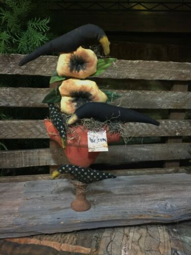 Title (ebay affiliate link): *Primitive 12x9in LARGE POT FLOWERS BOBBIN HANDMADE Country old rusty doll*