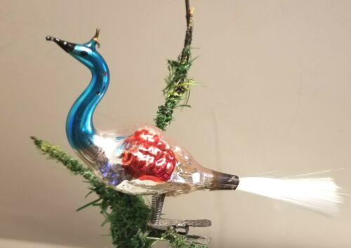 Title (ebay affiliate link): Second Bright, colorful Peacock on Clip, White Spun Glass Tail. 1930s German Orn