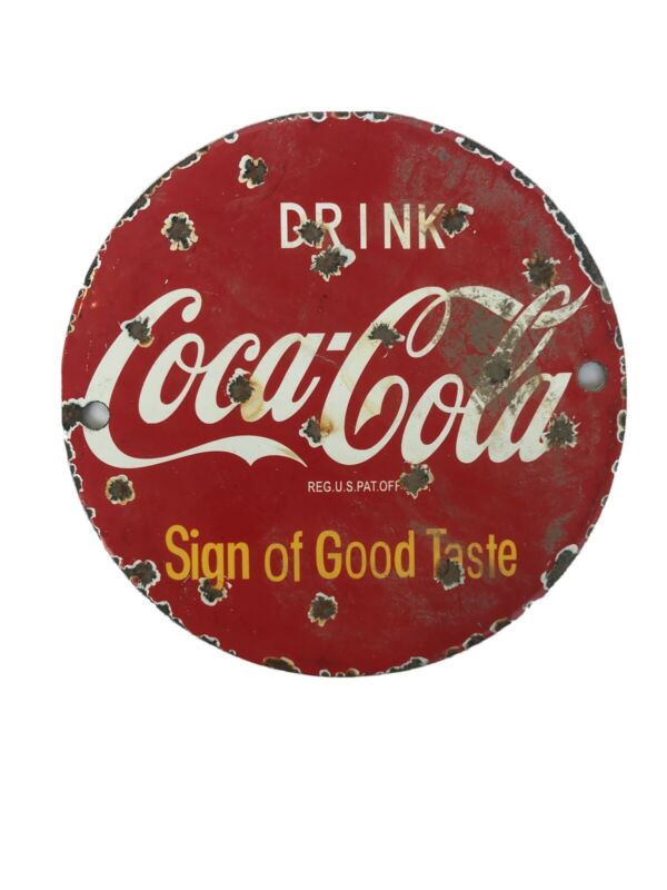 Drink Coca-Cola A Sign Of Good Taste Soda Pop Classic PORCELAIN METAL SIGN Used