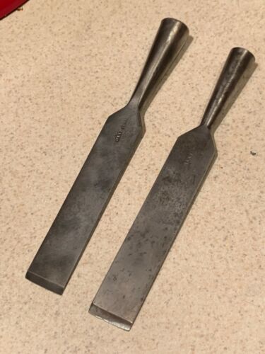 Vintage lot of TWO 1-1/4 wood chisels. GEO PARR, FULTON