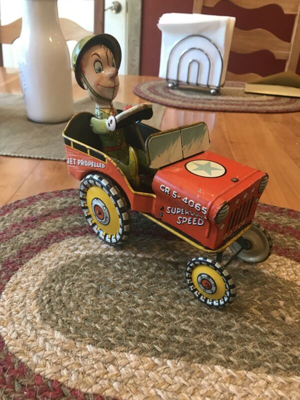 Title (ebay affiliate link): Original G I Joe Unique Art Jouncing Jeep Tin Wind - Up Toy Car 7" Works