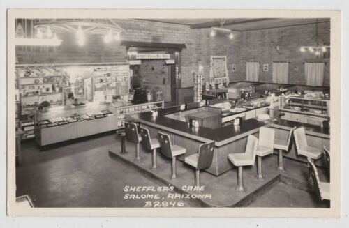 Title (ebay affiliate link): SALOME, ARIZONA - SHEFFLER''S CAFE Soda Milkshake Candy RPPC Real Photo Postcard