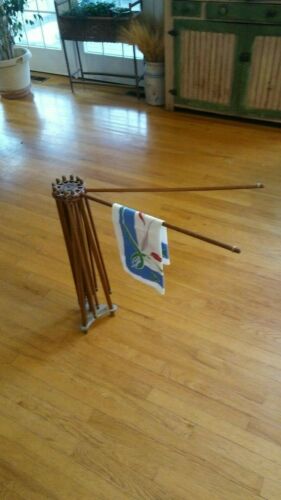 Antique Vintage 1920''s Wooden Umbrella Clothes Drying Rack collapsible primitive