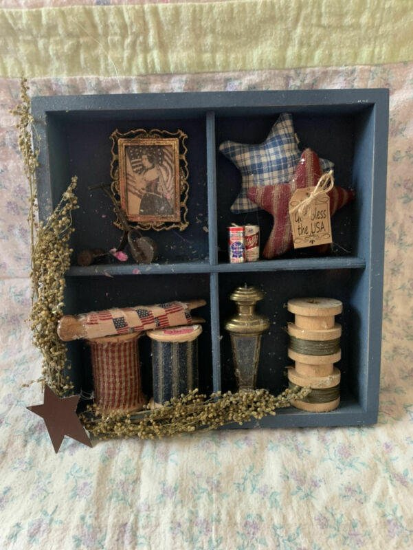 Title (ebay affiliate link): Handmade Prim Americana Shadow Box Gathering Dunroven Stars God Bless the USA