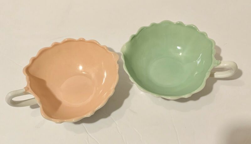 Anchor Hocking ''30s Oyster & Pearl Vitrock Green And Peach Nappy Easter Colors