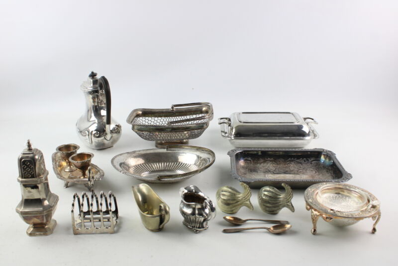 Title (ebay affiliate link): 12 x Vintage SILVER PLATE Tableware Inc. Coffee Pot, Egg Cup Stand, Dishes 4666g