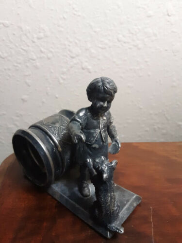 Antique Silver Plated Figural Napkin Ring Victorian circa 1880 Boy, Dog Meridian
