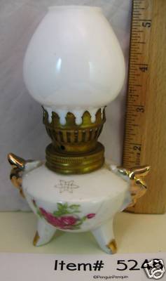 #5248 Vintage Ceramic & Milk Glass Miniature Oil Lamp