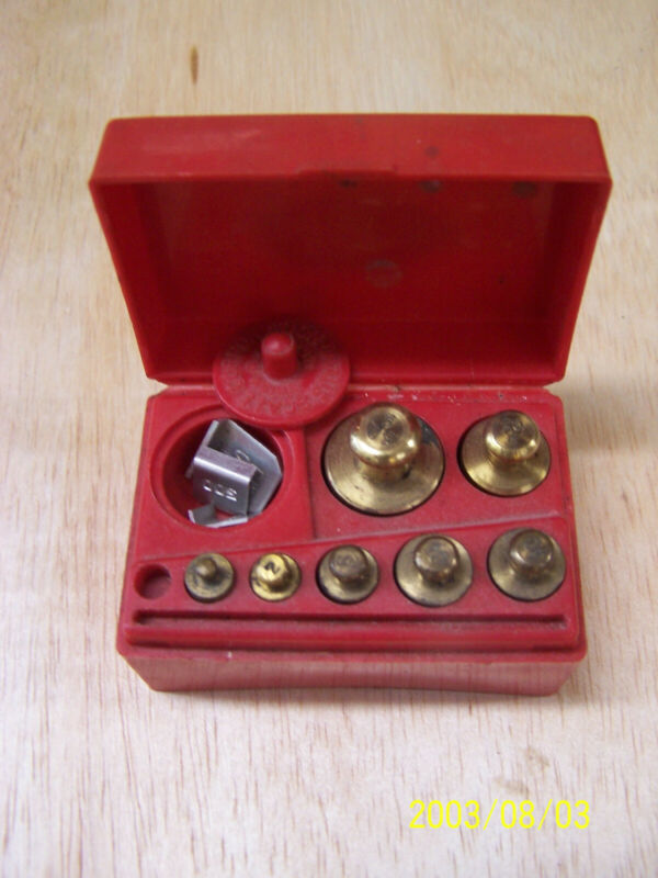 Title (ebay affiliate link): Vintage Ohaus Apothecary Scale Weights Original Box Grams