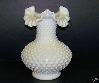 FENTON HOBNAIL MILK GLASS RUFFLED VASE