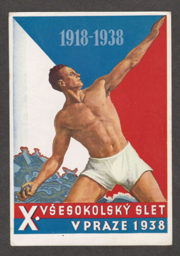 Title (ebay affiliate link): 1938 Czech Sokol Games at Prague artist: Ferd. Hirstl. Man throwing grenade!
