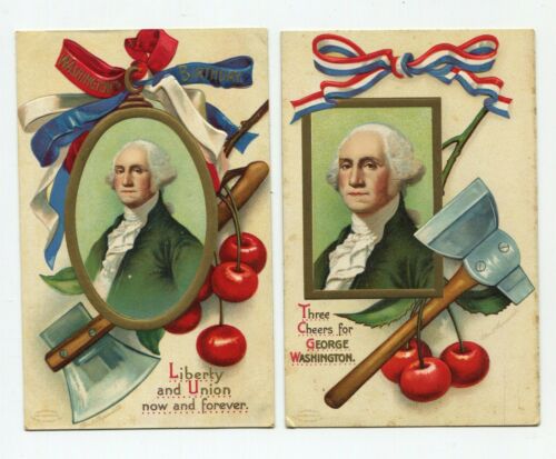 Title (ebay affiliate link): Hatchet, Cherries, 2 Washington Birthday postcards by Ellen Clapsaddle