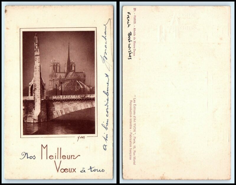 FRANCE Postcard - Paris, Abside de Notre Dame ART by Yvon, Meilleurs Voeux D30