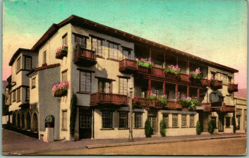 Monterey, California Postcard MISSION INN Street View Hand-Colored / 1938 Cancel