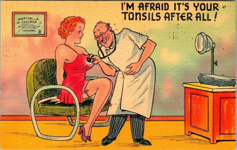 Title (ebay affiliate link): C38-0422, IT''S YOUR TONSILS AFTAR ALL.. COMIC POSTCARD.