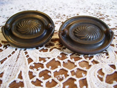 Title (ebay affiliate link): 2 ANTIQUE BRASS PLATE DRAWER PULLS FURNITURE HARDWARE