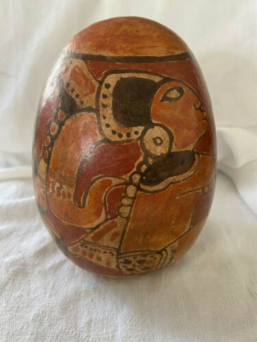 ANCIENT ARTIFACT FIGURE PRE COLUMBIAN POTTERY MAYAN FIGURE GOD EGG SHAPED