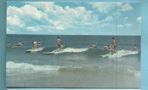 Title (ebay affiliate link): Virginia Beach, Va/ surfing/ many men on surfboards/ chrome postcard