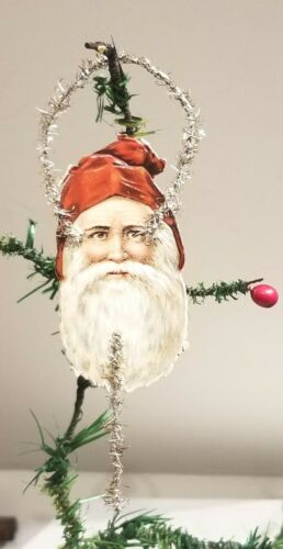 Title (ebay affiliate link): Santa Head, Brown eyes, gentle old Man. Miniature Paper & Tinsel Orn. German