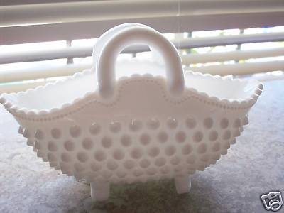 BEAUTIFUL HOBNAIL FOLDED BASKET MILK GLASS AWESOME!!