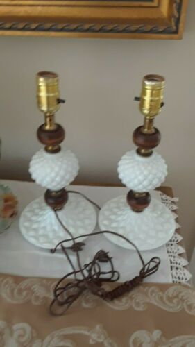 Title (ebay affiliate link): Set of 2 Vintage Milk Glass Desk Bedroom Table Nightstand Lamps NO SHADE