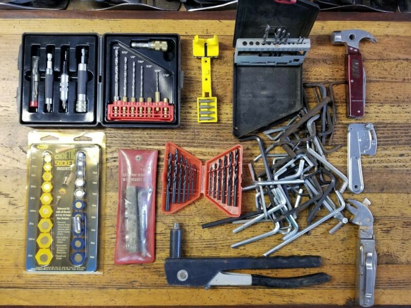 Title (ebay affiliate link): VINTAGE Tools Drill Driver Bits Socket Allen Rivet Gun Multitool Mixed Tool Lot