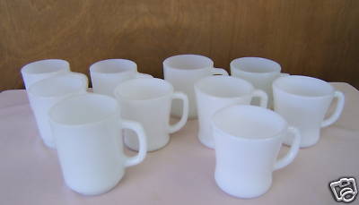 Lot of 10 White Milk Glass Mugs/Cups Fire-King Glasbake